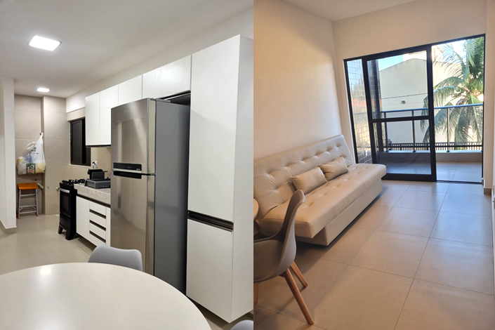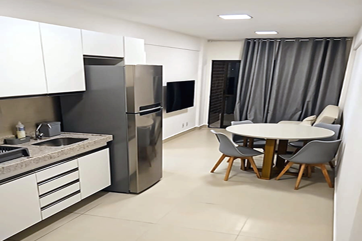 A suíte garante privacidade, enquanto o segundo quarto agrega versatilidade. A área social integra sala e cozinha de forma funcional, e o fato de já estar semi mobiliada reduz investimento inicial, acelera a entrada em operação e facilita tanto para uso próprio quanto para começar a gerar renda imediatamente.
