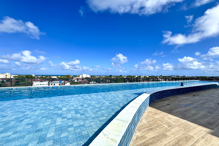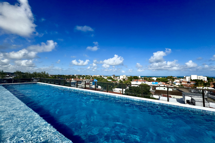 O empreendimento conta com rooftop com piscina panorâmica e áreas de convivência que valorizam a experiência do hóspede — um diferencial competitivo importante quando o imóvel é anunciado em plataformas digitais. Em destinos de praia, lazer bem estruturado influencia diretamente na percepção de valor e na diária praticada.